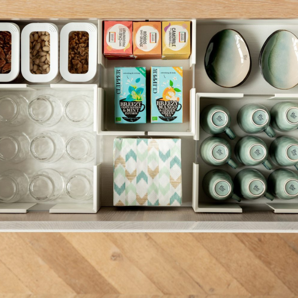 Met de Blum Orgalux fiber antislipmat voor lades blijven uw spullen keurig op hun plaats tijdens