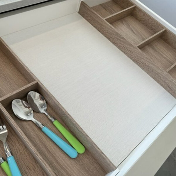 Antislipmat fiber op maat gemaakt voor keukenlade of kast, wit