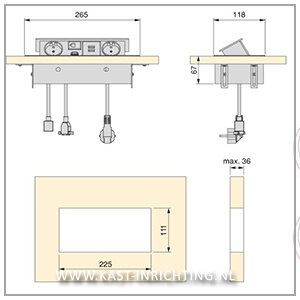 - Benodigde gat grootte: 225 x 111 (b x d)
