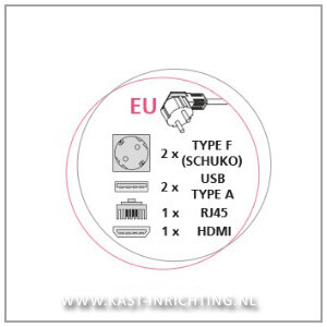 Met de atom flip top inbouw oplossing voorziet u werkbladen van stroom, usb aansluiting (1 x USB-A en 1 x USB-C), HDMI en een RJ45 aansluiting.