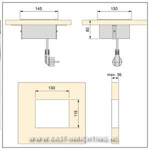 - Benodigde gat grootte: 131 x 116 (b x d)