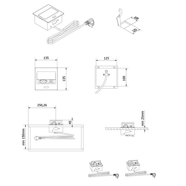 Het Avaro inbouw stopcontact is een compact stopcontact en daardoor zeer geschikt voor gebruik in kleinere ruimtes. Met het Avaro inbouw stopcontact, voorziet u uw buro, werkblad, keuken, slaapkamer of kinderkamer eenvoudig van een extra stopcontact en 2 USB-A aansluitingen.