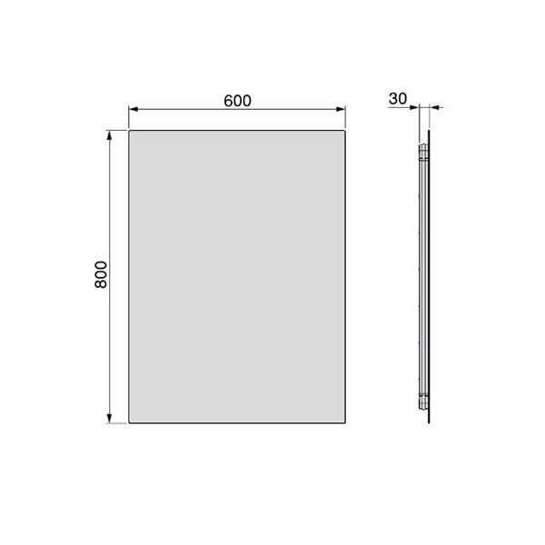 Rechthoekige spiegel Centaurus met ledverlichting heeft een afmeting van 800 x 600 mm.