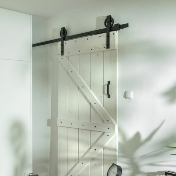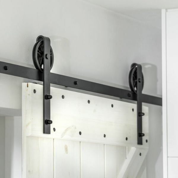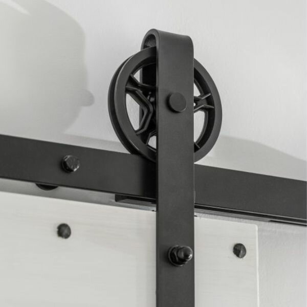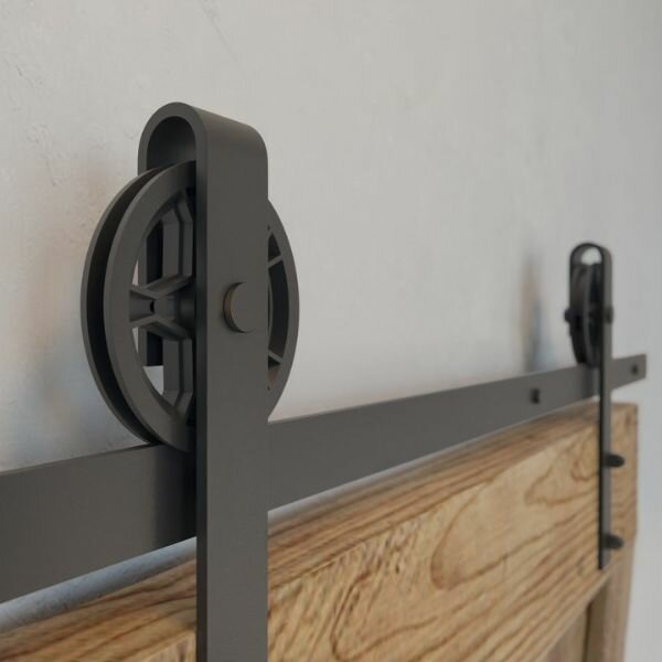 Het loft schuifdeurbeslag is een industrieel schuifdeursysteem dat een stoere uitstraling geeft aan uw interieur. Het schuifdeur systeem zorgt ervoor dat de deur zijwaarts kan worden geopend door middel van de wielen die de deur begeleiden over de stalen rails. Het schuifdeurbeslag is stevig en kan maximaal 100 kg dragen. De kogellagers in de hangers zorgen voor een gemakkelijke beweging over de rails. Hierdoor is het openen van een loftdeur van zwaar gewicht geen probleem, daarnaast is deze deur standaard voorzien van soft-close (demping). De spaakwielen zijn van kunststof en hebben een diameter van 12,4 cm.