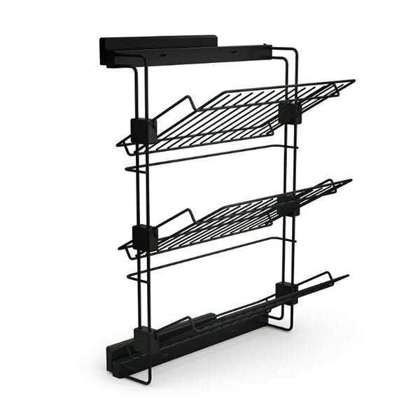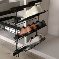 Uittrekbaar schoenenrek voor zijwandmontage. Dit schoenenrek monteert u eenvoudig in uw kast.