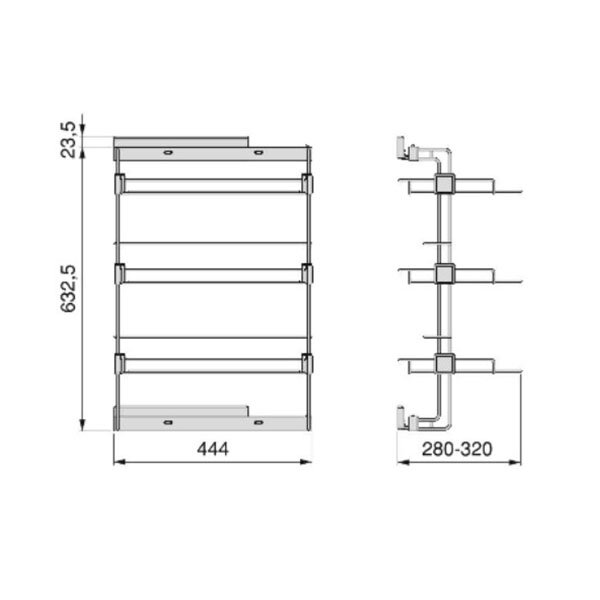 - 280-320 x 444 x 632,5 mm (b x d x h)