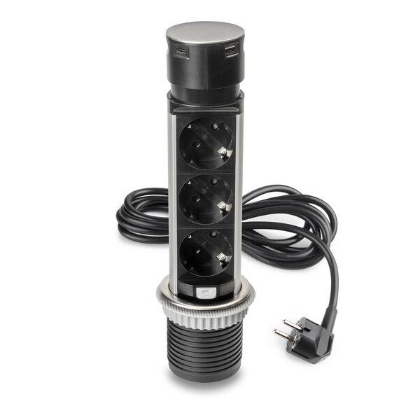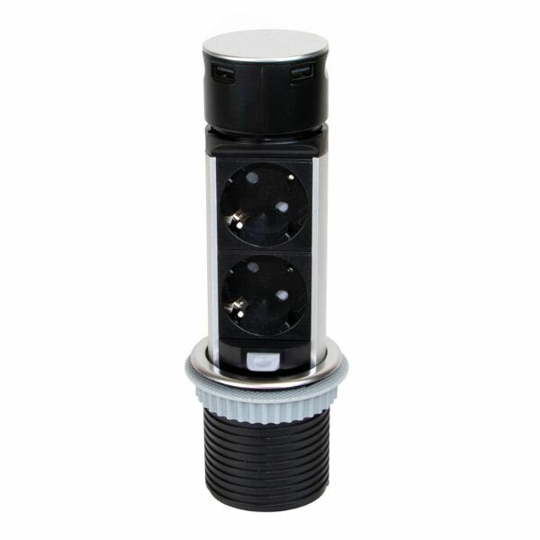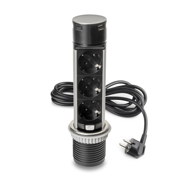 Dit uittrekbare stopcontact is voorzien van 2 stopcontacten en 2 USB poorten, waarvan 1 x USB-A en 1 x USB-C is. Na gebruik  kan het stopcontact mooi worden weggewerkt in uw keuken- of werkblad.