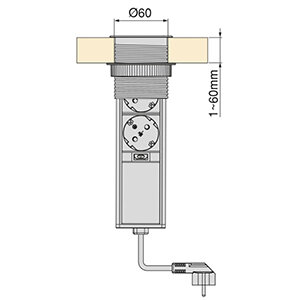 • Benodigde gat grootte: 60 mm