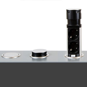 Uittrekbaar stopcontact van Emuca met RVS deksel, 2 stopcontacten, 2 USB, randaarding (NL)