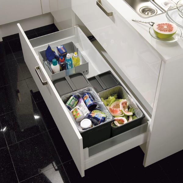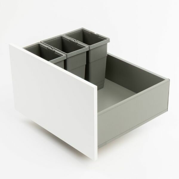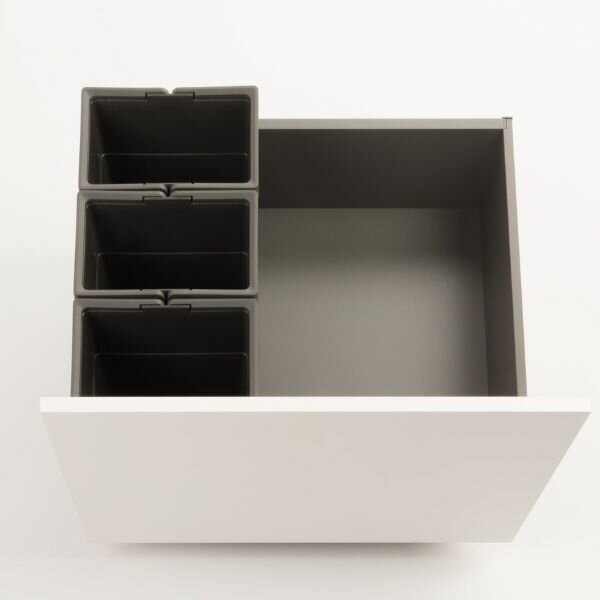 De afvalemmers uit de serie eins2vier van Ninka, zijn verkrijgbaar in diverse maten, hiermee kunt u zelf de beste indeling in uw lade