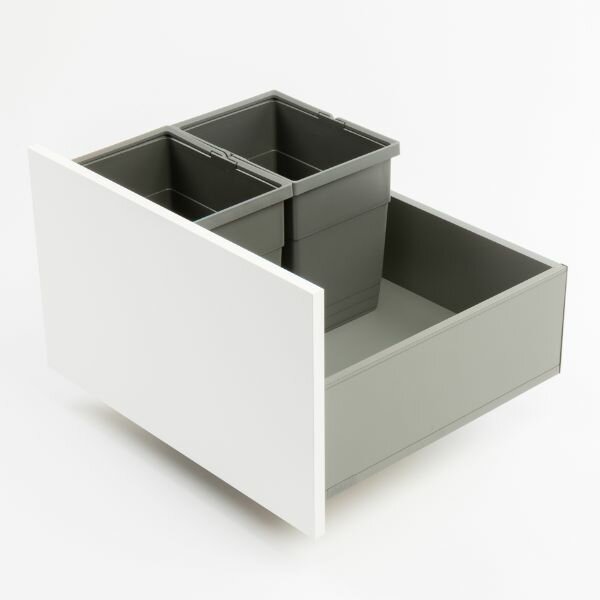 De afvalemmers uit de serie eins2vier van Ninka, zijn verkrijgbaar in diverse maten, hiermee kunt u zelf de beste indeling in uw lade