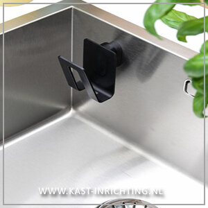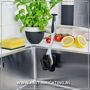 Met deze houder voor een spons of afwasborstel van zwart kunststof van Happy Sinks is het eenvoudig om je spons of borstel op te bergen uit het zicht maar toch binnen handbereik. Met zijn gepatenteerde magneet is de Multihouder eenvoudig in je spoelbak te installeren zonder gereedschap. Plaats de houder op de gewenste plaats aan de binnenkant van je spoelbak en de magneet aan de buitenzijde.