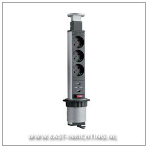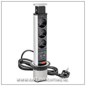 Met dit smalle model uittrekbaar stopcontact heeft u de beschikking over 3 extra stopcontacten en 2 USB aansluitingen, die na gebruik mooi kunnen worden weggewerkt in uw keuken- of werkblad.