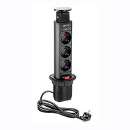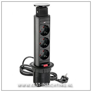 Met dit smalle model uittrekbaar stopcontact heeft u de beschikking over 3 extra stopcontacten, die na gebruik mooi kunnen worden weggewerkt in uw keuken- of werkblad.