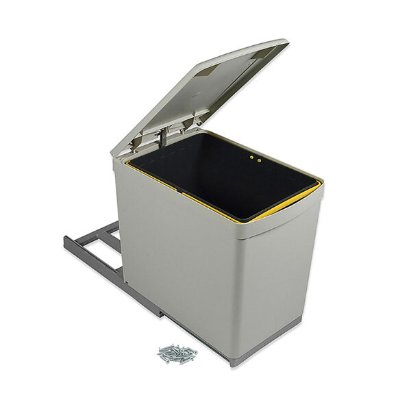 De afvalemmer wordt handmatig uit de kast getrokken, de deksel opent dan automatisch.