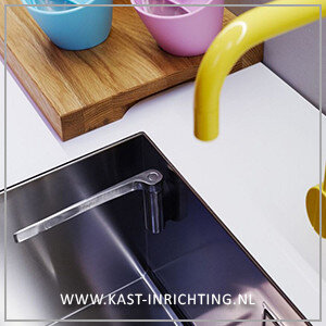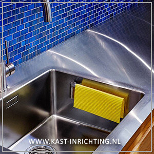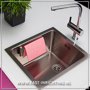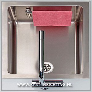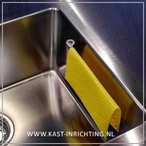 De RVS houder biedt plaats aan één doekje, het doekje droogt sneller en ligt niet op een hoopje in of naast de gootsteen. Omdat de houder zwenkbaar is kan je het doekje makkelijk pakken en weer ophangen.