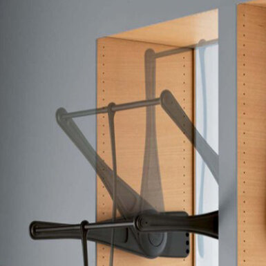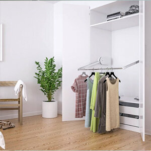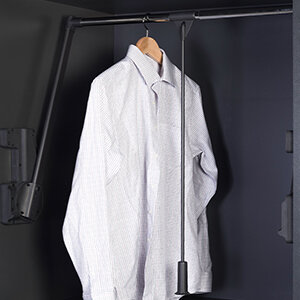Met een garderobelift, ook wel kledinglift genoemd, kunt u uw garderobekast volledig benutten. De garderobelift is vooral heel handig in gebruik bij hoge kasten, met behulp van de kledinglift kunt u de gehele kast benutten. De kleding hangt boven in de garderobekast en met een simpele beweging trekt u de kledinglift naar voren en heeft u uw kleding binnen handbereik.